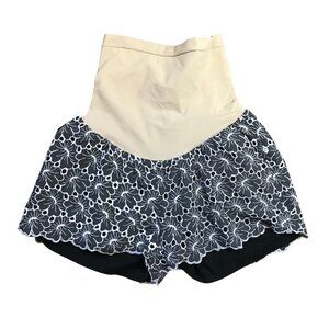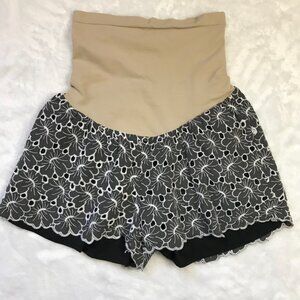 A Pea in the Pod Maternity Shorts Women's Medium Black Floral Eyelet Over Belly