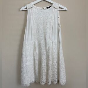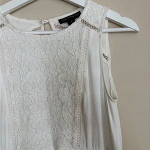 Ivory/cream lace cotton top with beautiful details. Sleeveless for warmer weather or it can be layered with sweater or blazer for a more dressed up look.