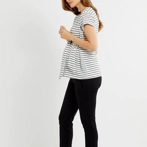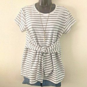 A Pea in the Pod TIE FRONT TEXTURED MATERNITY TOP Size SMALL Black White Stripe