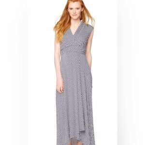 A Pea in the Pod Wrap Style Polka Dot Modest Maternity Maxi Dress Size Medium