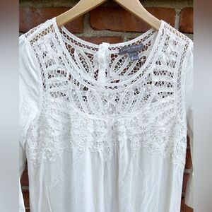 A Pea In the Pod Ivory Crochet 3/4 Sleeve Maternity Top