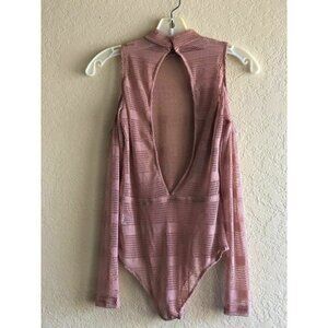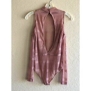 Nasty Gal A. Peach Womens Dusty Pink Mesh Make A Mesh Striped Bodysuit size S