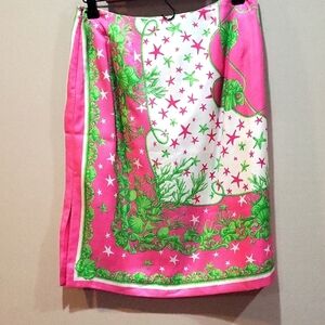 A Perfect Day In Paradise 100% silk shell skirt reminiscent of Lilly Pulitzer. This is a size 8 but definitely fits like a 6. This is selling on another site for $115 right now.