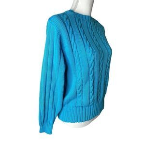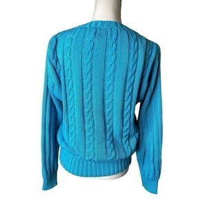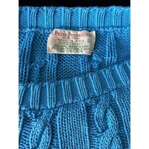 A. Peter Pushbottom Vintage Blue Cable Knit Sweater 70s 80s Retro Size S