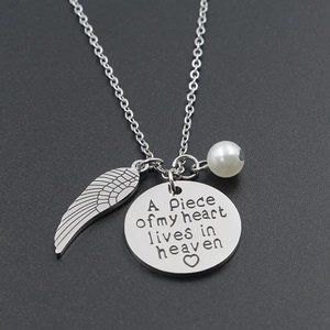 "A Piece of My Heart Lives in Heaven" 18k Gold Wing Necklace