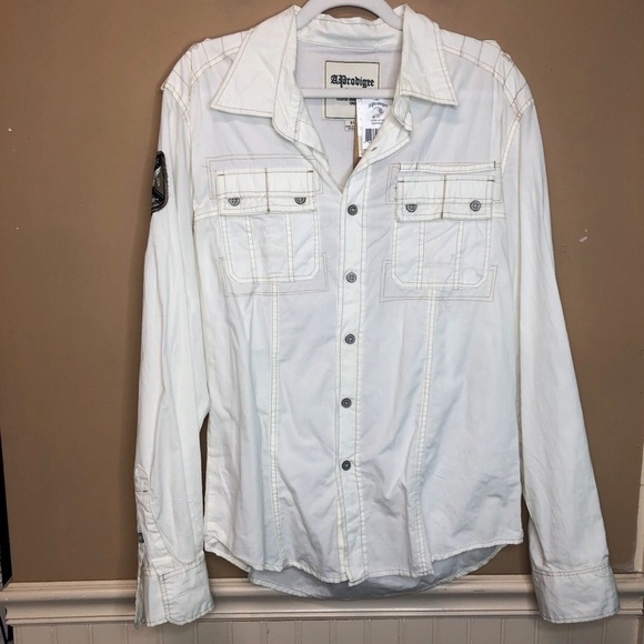 A Prodigee Cream Mens Button Front Shirt Size XL NWT