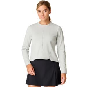 Elevate your everyday style with the Tulip Crewneck by A. Putnam. Crafted in a soft, stain- and water-resistant modal blend, this double-knit top features a flattering tulip hem and slightly dropped back tail for a modern, feminine silhouette. Lightweight and polished, it's perfect for layering or wearing solo through transitional seasons. Excellent pre-owned condition with no flaws.