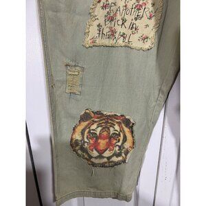 These pants are a masterpiece of chaos and cool. With patches shouting life advice and a tiger that’s either fierce or judging your snack choices, they’ll turn heads faster than a bad haircut. Wear them to declare, "Yes, I am this interesting!"