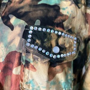A Rare Bird Long Sleeve Cotton Mini Dress in Camo with Embellishments Size Small
