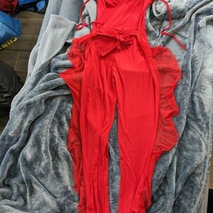 A Red Ruffle Jumpsuit