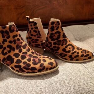 A Ryder Girl booties animal print faux suede ankle boots pull on low heel Sz 7
