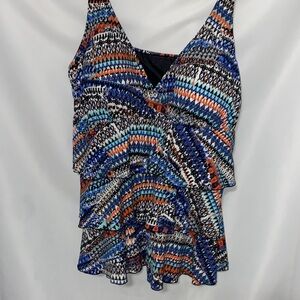 A SHORE FIT TUMMY SEPARATES WO SIZE 24 MULTICOLOR RUFFLE TIERED SWIM TOP BUILT IN BRA CLEAN LENGTH MEASURES APPROX 29” from shoulder to hem VERY GOOD CONDITION
