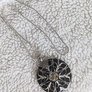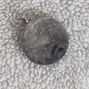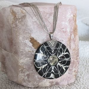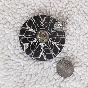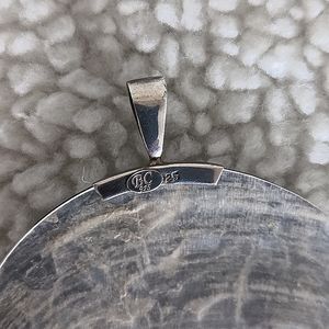 What an Attractive Handmade Sea Shell Pendant! A Beautiful Sterling Silver bail with Scroll Work that has the initials of the artist. Approximately 2 1/2" across It looks Amazing with Chunky Sweaters & Denim!