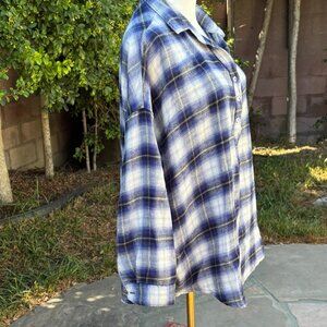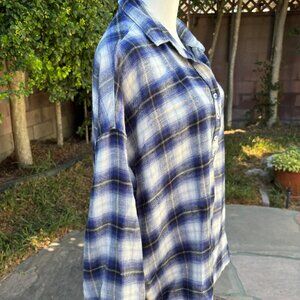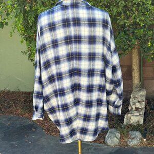 A Shirt Thing Diego Plaid Popover Blue White M L Relaxed Luxe Slouchy Shirt