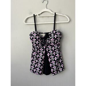 A Shore Fit Tankini Top Womens 8 Black Purple Bow Style 370505 Swim Tank