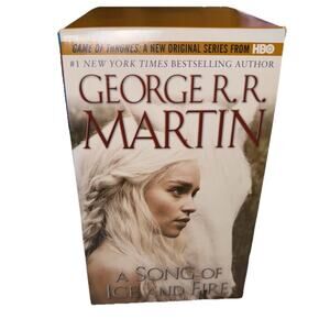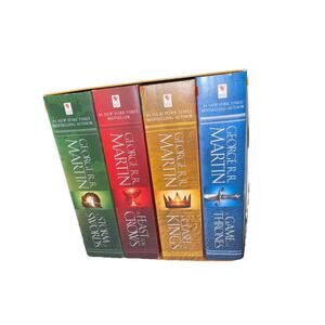 This product is a set of four novels from George R. R. Martin's "A Song of Ice and Fire" series, including "A Game of Thrones," "A Clash of Kings," "A Storm of Swords," and "A Feast for Crows." Published by Random House Publishing Group in 2011, these mass market paperback books are in English and span a total of 120.6 ounces. The series falls under the genres of fiction, with elements of action & adventure, fantasy/epic, and media tie-ins, making it a compelling read for fans of epic storytelling and intricate world-building.