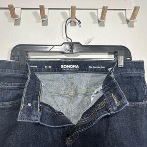 These Sonoma blue straight jeans offer a timeless look with their classic denim fabric. Crafted for durability and comfort, they are perfect for everyday wear. The medium to heavy weight denim ensures a sturdy feel without compromising on style.
