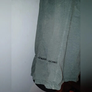 easyflow tunic peplum tank top blouse shirt with pretty eyelet lace top and bottom design. off side back slit. 100% cotton. see pictures. they are part of the description. vintage. pre-owned. in nice condition. olive green. boho bohemian hippie hippy peasant
