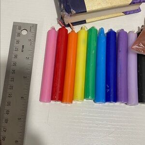 Enhance your home gatherings with the 'A Spell A Day' book and a vibrant set of multicolor candles. Perfect for creating a magical atmosphere.