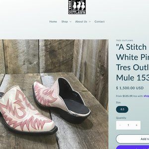 "A Stitch In Time" Ivory/ Pink Stitch Tres Outlaws Mule 1537* SZ 8.5