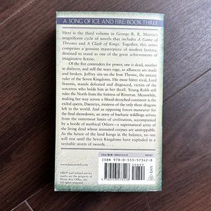 Here is the third volume in George R. R. Martin’s magnificent cycle of novels that includes *A Game of Thrones* and *A Clash of Kings*. As a whole, this series comprises a genuine masterpiece of modern fantasy, bringing together the best the genre has to offer. Magic, mystery, intrigue, romance, and adventure fill these pages and transport us to a world unlike any we have ever experienced. Already hailed as a classic, George R. R. Martin’s stunning series is destined to stand as one of the great achievements of imaginative fiction.