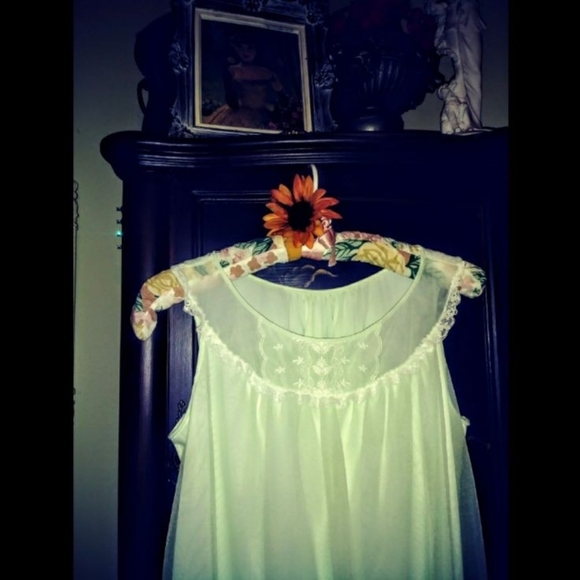 π This vintage mint lace nightgown floats like a soft orchard breeze β the kind that brushes your skin at dawn before the world wakes. The color is a gentle pastel mint, rare and dreamlike, wrapped in whisper-soft nylon that moves like water against the body.