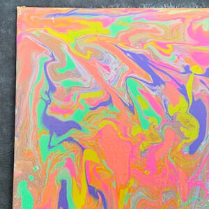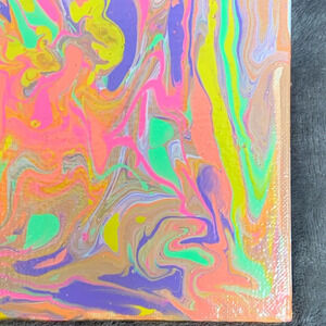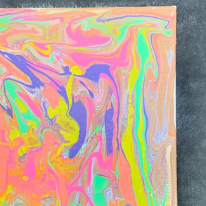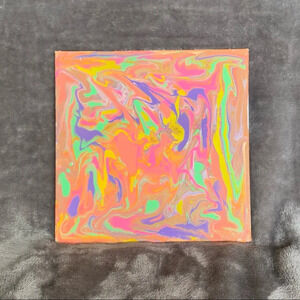 “A Taste of Neon” Paint Pour - 8”x8” canvas with pink, coral, blue, green
