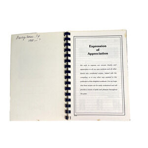 Good condition. Inner front page has some writing and scuffs mostly small area at the corner. Some pages have written notes but the majority of pages are clean and unmarked. The bottom ring of the comb binding is broken. Please see photos. All text and recipes are clearly readable.