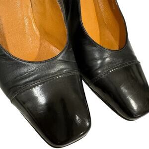 A. Testoni Black Leather Heels 3" Square Toe Italy Size 5.5 with Dust Bag