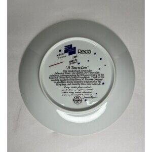 This beautiful collector plate titled "A Time To Love" by Sandra Kuck is a must-have for any collector of decorative items. The plate is in excellent shape and features a round design with a diameter of 8.75 inches. It was manufactured during the 1980-1989 time period and is part of the March of Dimes Edition. The plate is branded with the Reco logo and is perfect for displaying on a shelf or in a frame. Don't miss out on adding this unique and rare piece to your collection.