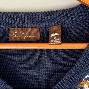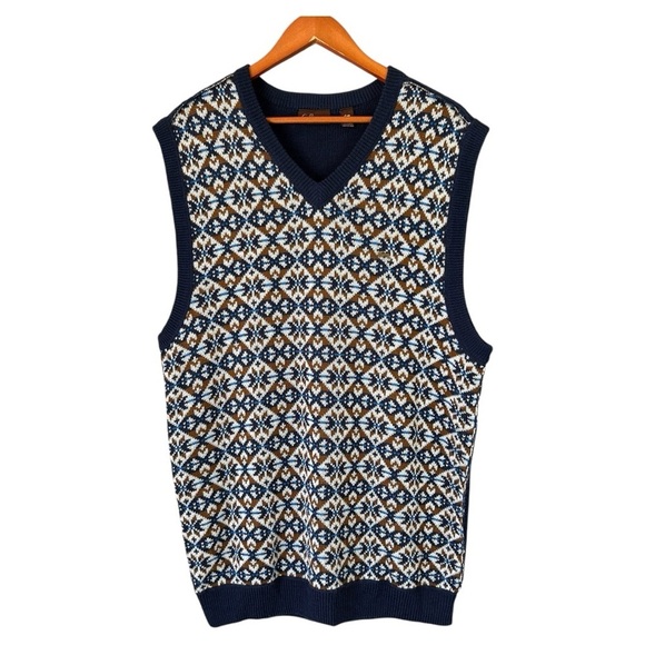 A. Tiziano Sweater Vest Mens 3XL Blue Wool Blend Geometric Pattern Snow Ski Gift
