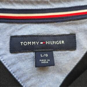 A Tommy Hilfiger Black Polo Shirt for Men Size L Short Sleeve Striped Sleeves details: