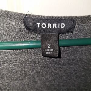 This is a Torrid dark grey faux wrap maxi dress in a size 2. It's in EUC. For office, work, party, church, trendy, dinner date, night out.