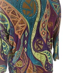 A Touch of Class vintage tunic in a stretchy bright aztec design fabric. Great for resort wear. Excellent condition. Size M. Please check measurements as this brand of clothing is sized for the mature woman and they run larger than a standard size.