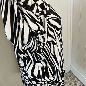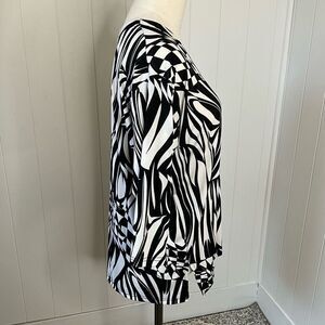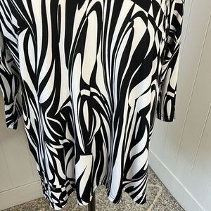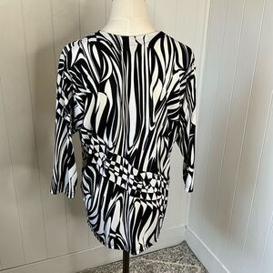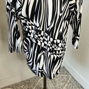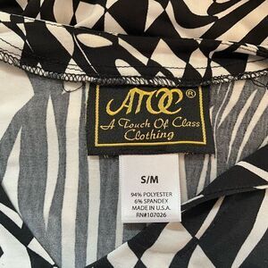 A Touch of Class Clothing Women S/M Tunic Top Black White Abstract Print Stretch