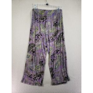 A Touch of Class Pants Women L/XL Multicolor Pleated Wide Leg Floral Slinky