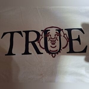 A True Religion T-shirt men's 3XL. Featuring the word True with Buddha