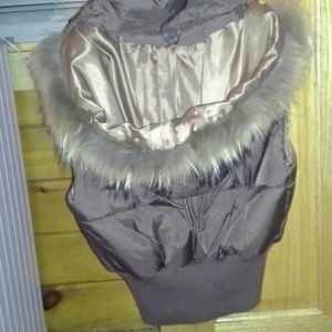 A dark brown vest, with a gold Baby Phat Goddess logo as the zipper. Very durable, as well as comfortable, breathable and warm.