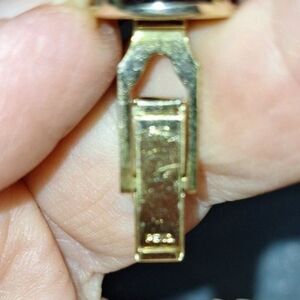 This is a nice pair of men's vintage cufflinks. The stone appears to be garnet but I can't test it so I am calling it glass. These have a gold tone base that is marked Pat. Pend. , but does not have any numbers or maker's marks. These do show a bit of wear, but are in good pre-owned condition.
