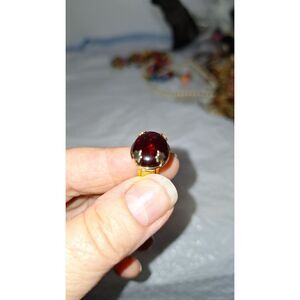A Vintage Pair of Red Glass Men's Cufflinks Gold Tone Formal Accessories
