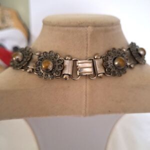 A Vintage Silver Tone Women's Choker Flower Pattern Cottage Core Steampunk