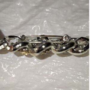 A Vintage Women's Brooch Pin Silver Tone Rhinestone Swirled Leaf Style Elegant
