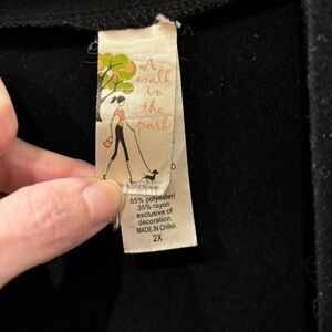 A Walk in the Park 2X black knit long open swing cardigan Artsy Leaves Kimono