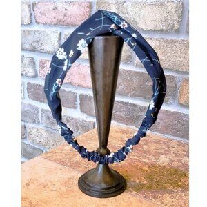 ~ 1 Headband made of navy silk crepe de chine with white daisies, styled with a pretty inter-twined detail at the top. Elastic back