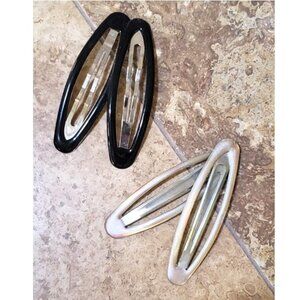 ~ 4 Snap barrettes, 2 shiny black & 2 pearlescent pale rose gold (lightly used)