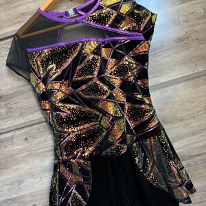 A Wish Come True 24203X Dance Costume Black Velvet Purple Gold Sequins Jazz Acro Tap Contemporary Competition size XLA