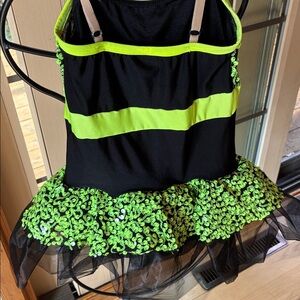 Shine on stage with this neon green and black kids dance costume. Perfect for performances, its vibrant colors ensure your child stands out. Check out all pics for details.