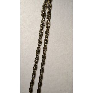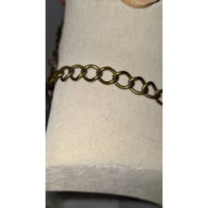 This is a mis-matched chain necklace with a double rolled chain on one side and a single large link chain on the other. The pendant consists of a large circle with gold tone rhinestones and two oval bail pieces with the same rhinestones. This has a very steampunk aesthetic to it but could be worn for almost any occasion.