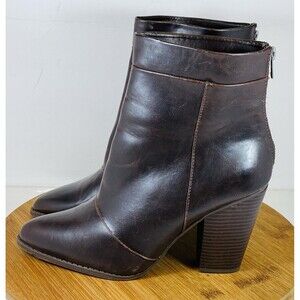 A+ Women's Shoes Brown Zip Block Heel Ankle Booties Boots Size 8