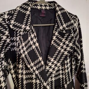Coat, Women's Jacket, Trendy, Preppie, Runway, Form Fitting, Black & White, Plaid, Tweed